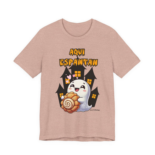 "Aqui Espantan" Cute Ghost Halloween Tee, Funny Ghost Shirt, Halloween Costume, Spooky T-Shirt, Gift for Halloween Lovers