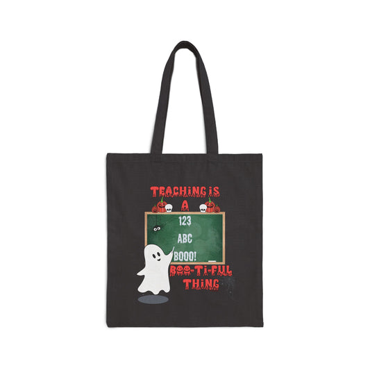 "Teaching is a Boo-ti-ful Thing" Halloween – Cute Ghost, Pumpkins & Spider Design Cotton Canvas Tote Bag