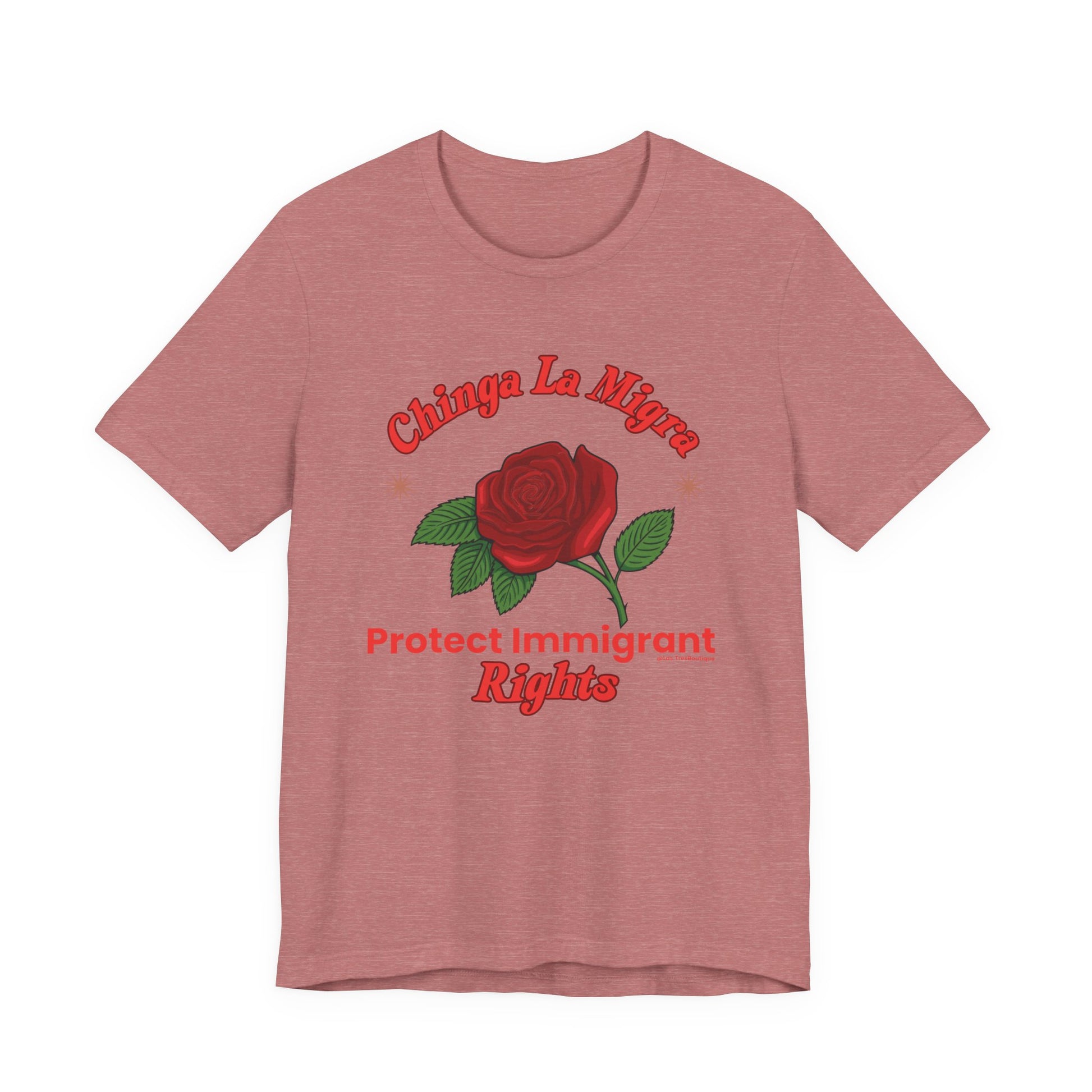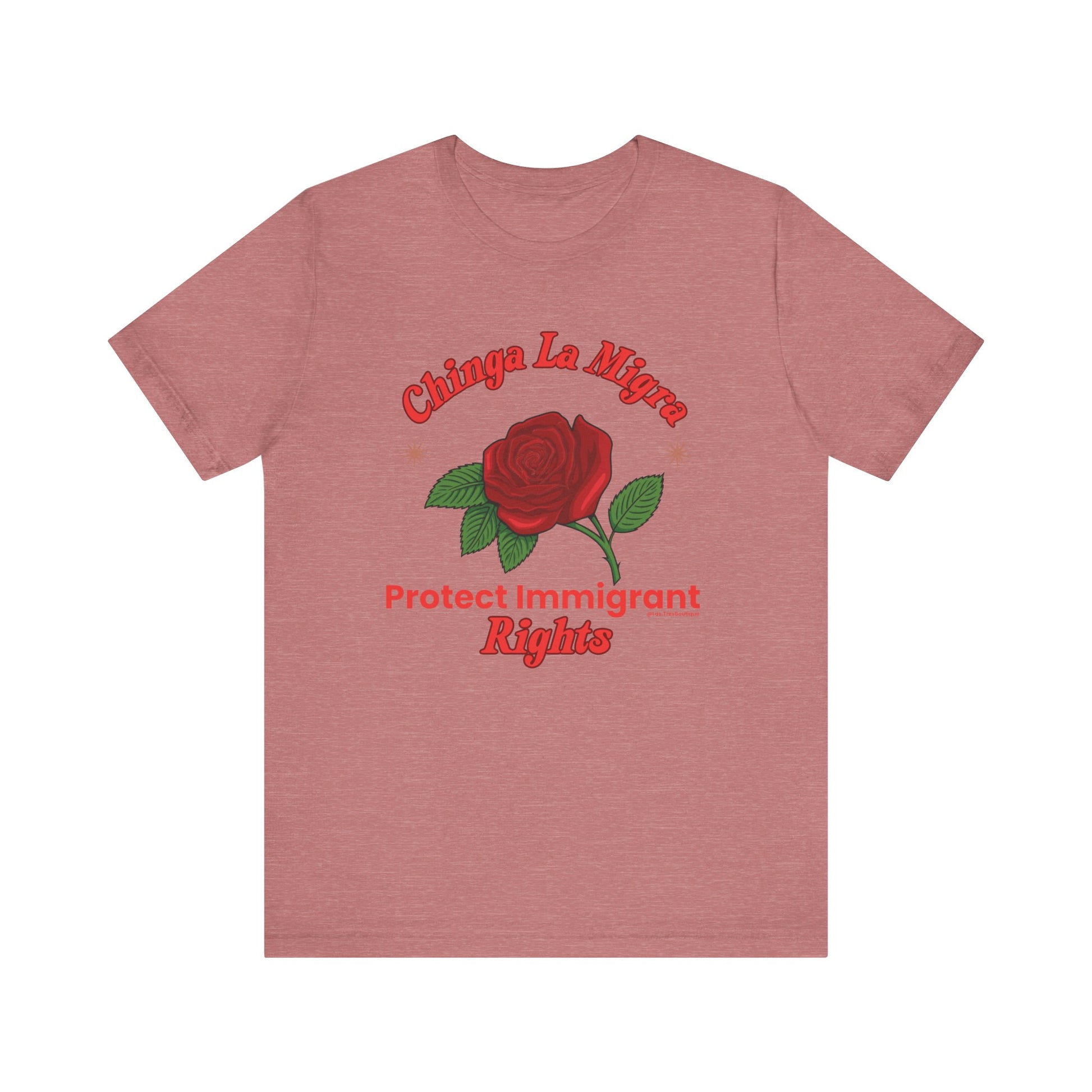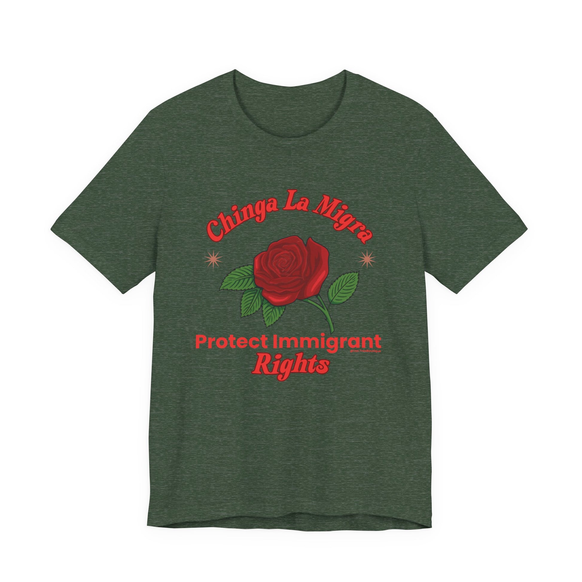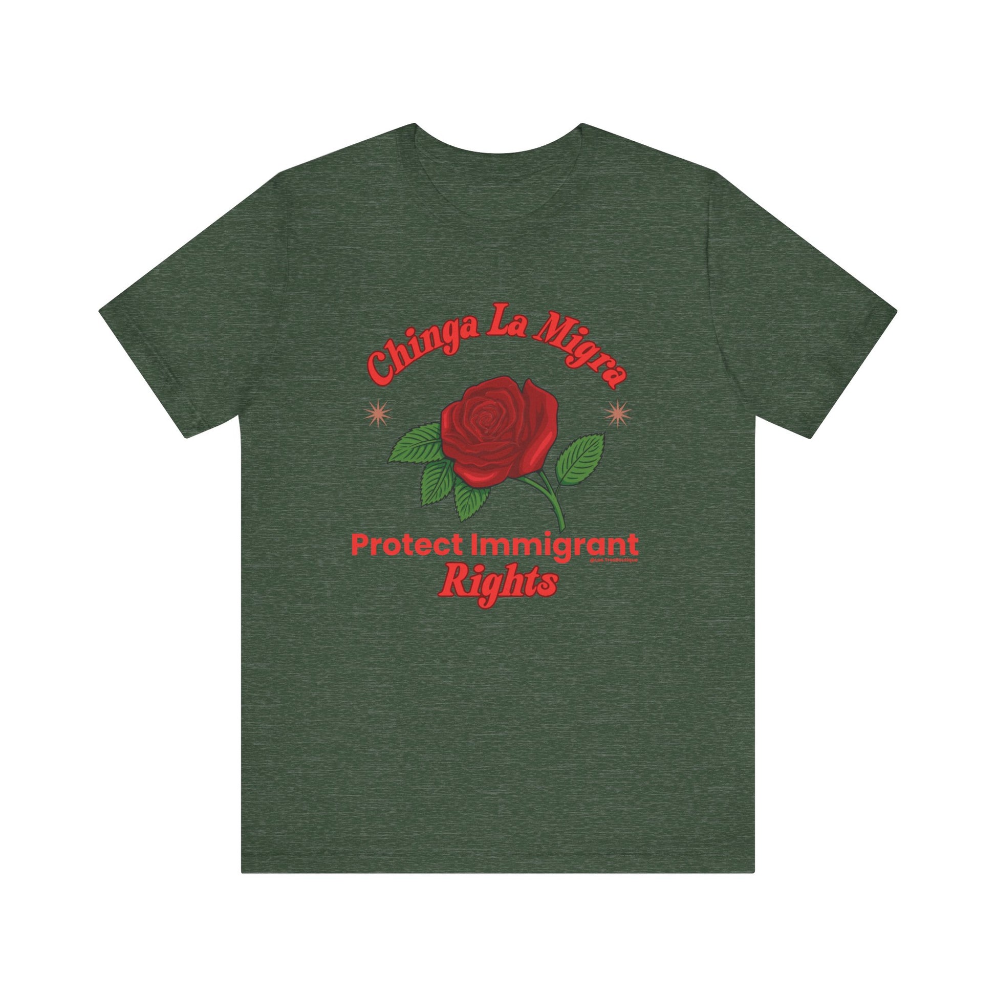 Raise your voice with style. This premium Unisex Sweatshirt from our Nuestra Voz collection features a striking red-rose graphic and the unapologetic call to “Chinga La Migra / Protect Immigrant Rights.”