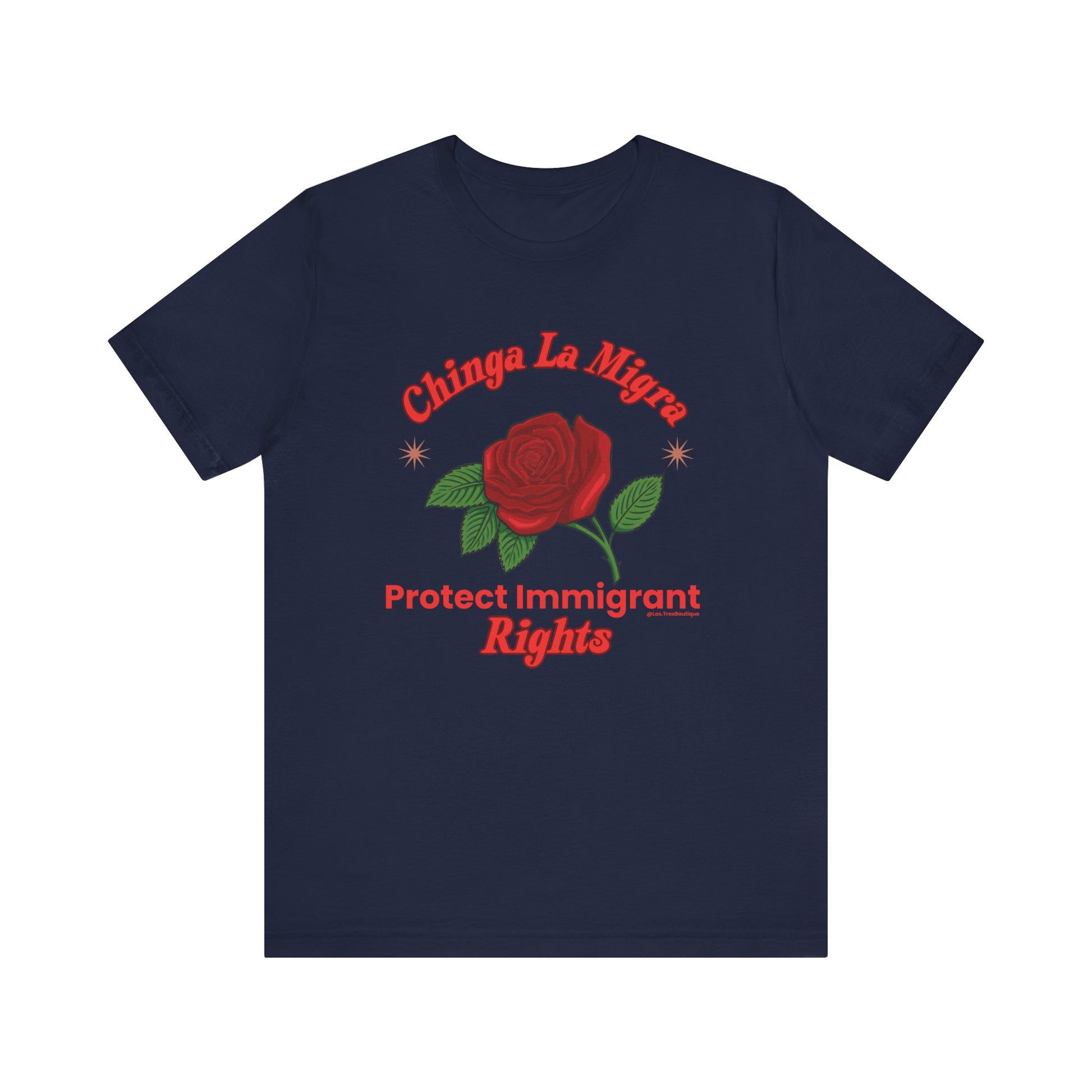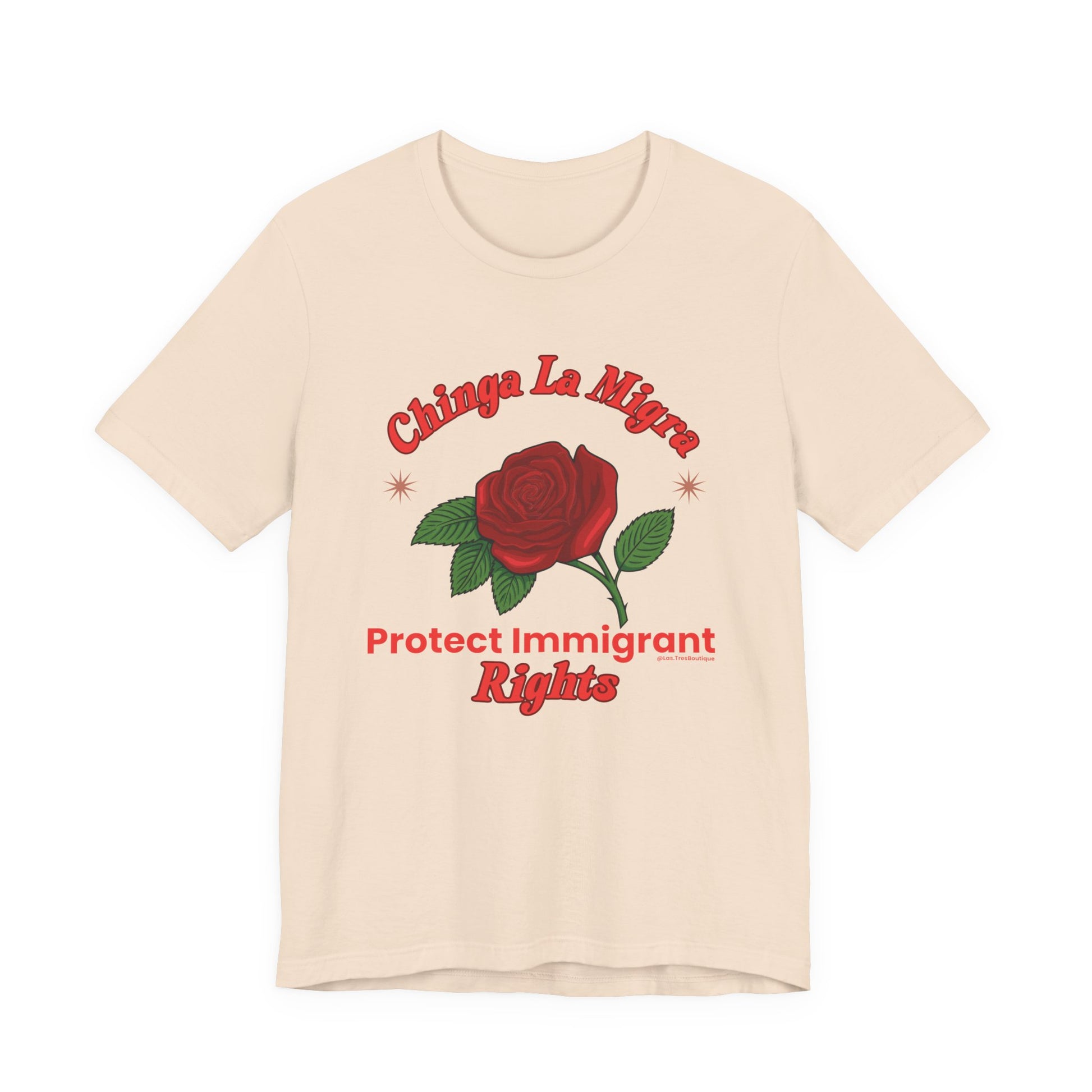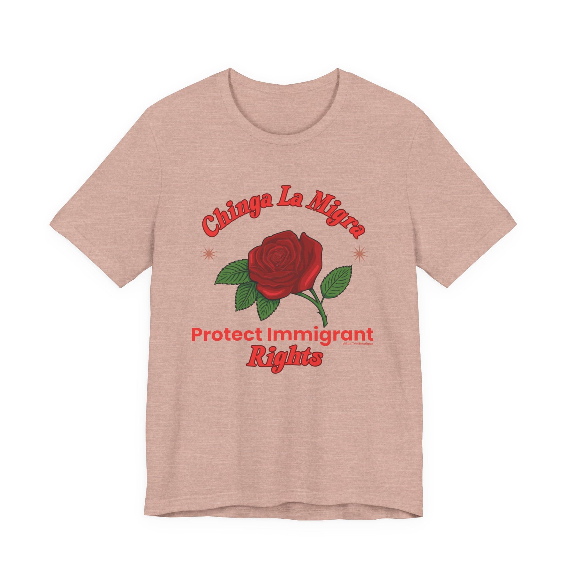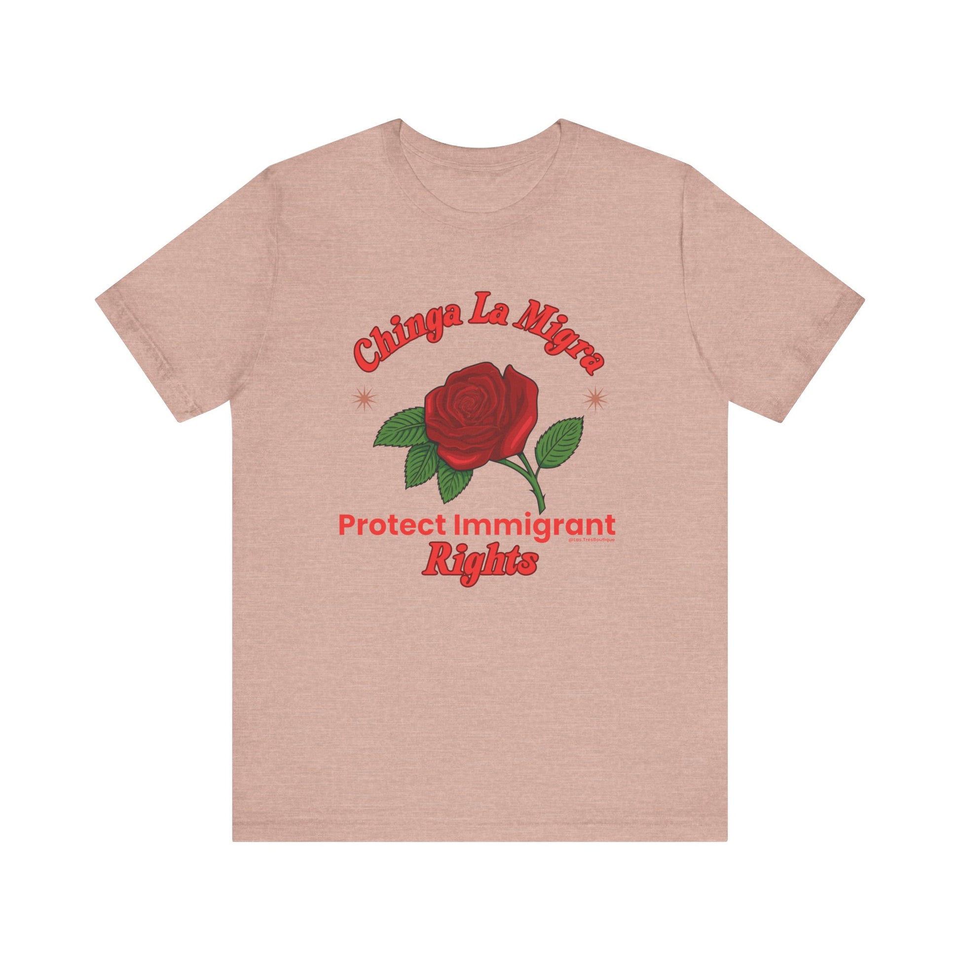 Raise your voice with style. This premium Unisex Sweatshirt from our Nuestra Voz collection features a striking red-rose graphic and the unapologetic call to “Chinga La Migra / Protect Immigrant Rights.”
